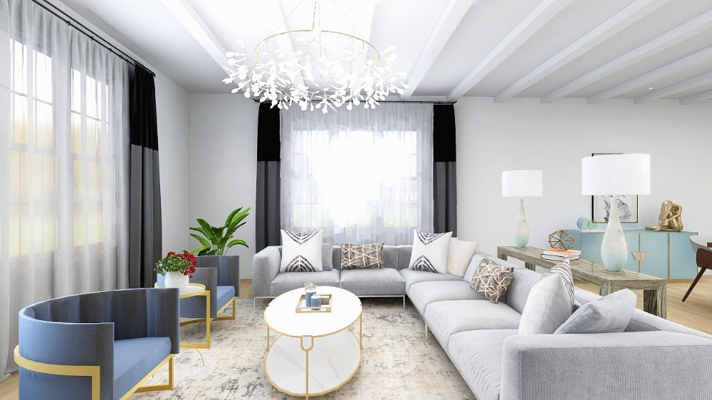 Everyone has their own unique design style, you do too! You may say, I'm not sure what my design style is and how to blend two styles together. Don't worry, select your two favorite styles, for example here we have modern style furniture with glam accessories to tie everything together. Some people make a mistake matching all the furniture pieces which lacks interest and personal touch.