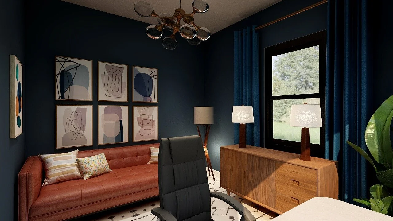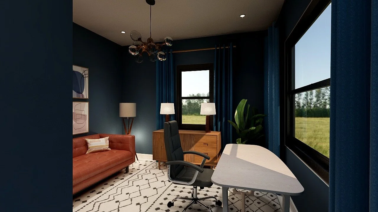 AFTER-MIDCENTURY STYLE HOME OFFICE - RENDERING