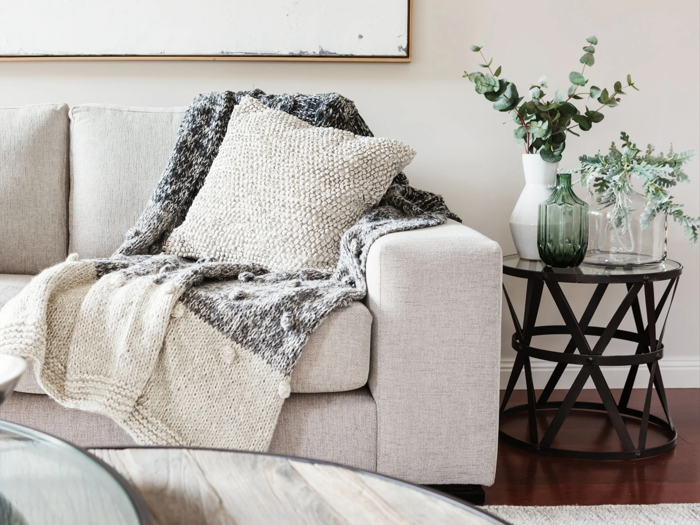 Add some indoor plants that are easy to take care of. Adding some succulents to a centrepiece for your coffee table can totally liven up your living room while creating a cozy environment.