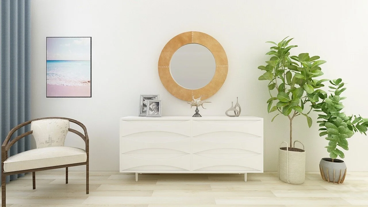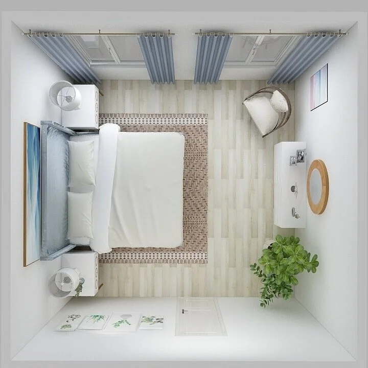 Also, minimal coastal accessories were added throughout the space. A neutral rug was chosen to anchor space. An accent chair is placed near the window as she likes to read at the end of the day. In the end, she selected the furnishings, and with the final design package I sent her a clickable shopping list to purchase these furnishings with the final renderings.