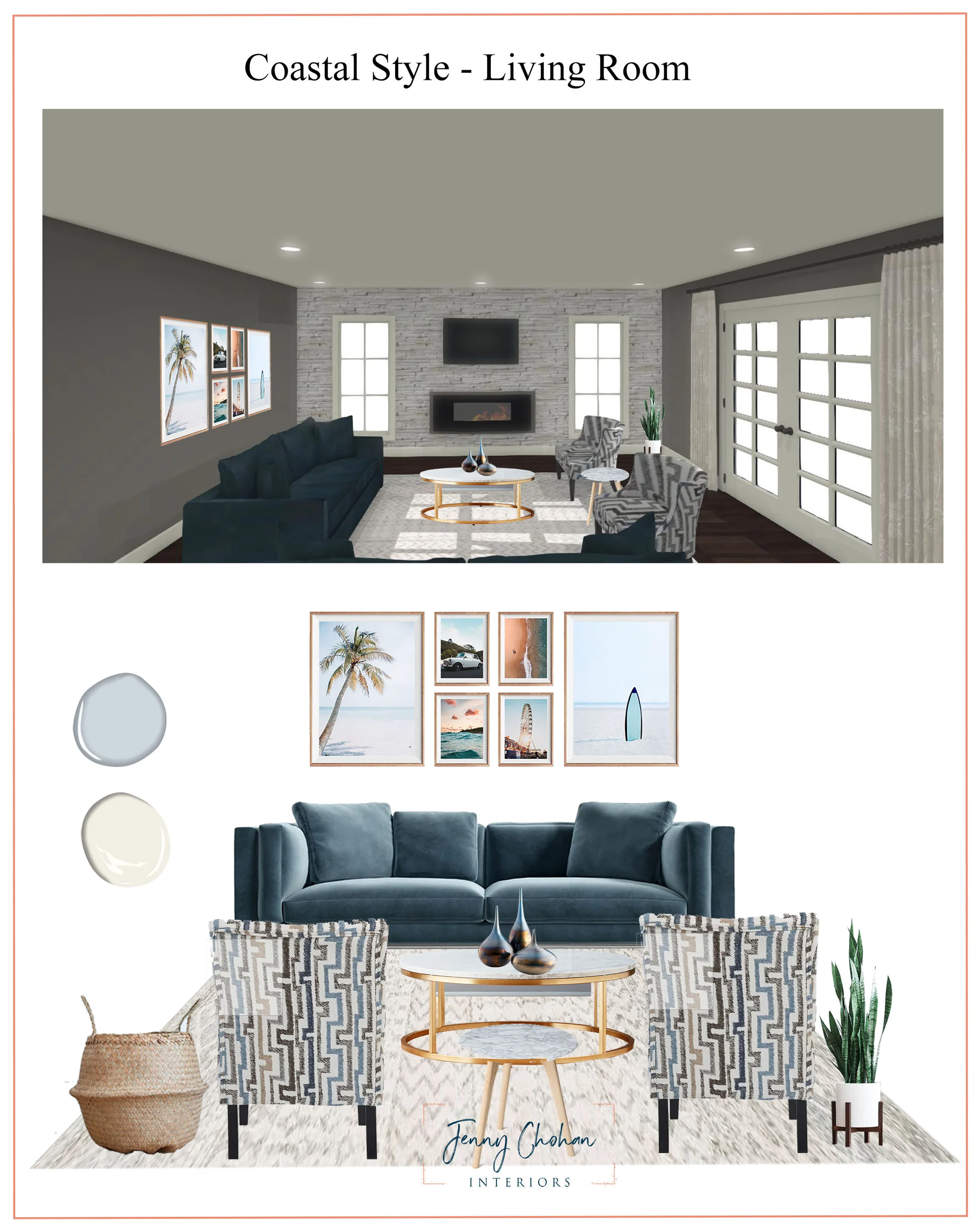 E-Design is a virtual interior design service where designing takes place online and the proposed design is conveyed by digitally representing your space. We create a cohesive plan and put together a shopping list so you can shop at your own leisure. All communication is done either by email or messenger chat which offers you flexibility and convenience in your schedule. E-design services are billed at flat rates so there are no surprises in our fees. If there are additional requirements in the E-Design services we do charge an $85 hourly rate.