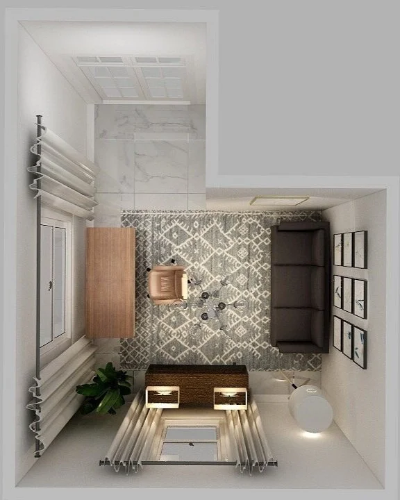 render phase where I will create a 3D rendering with look alike furniture pieces for you to visualize the space.