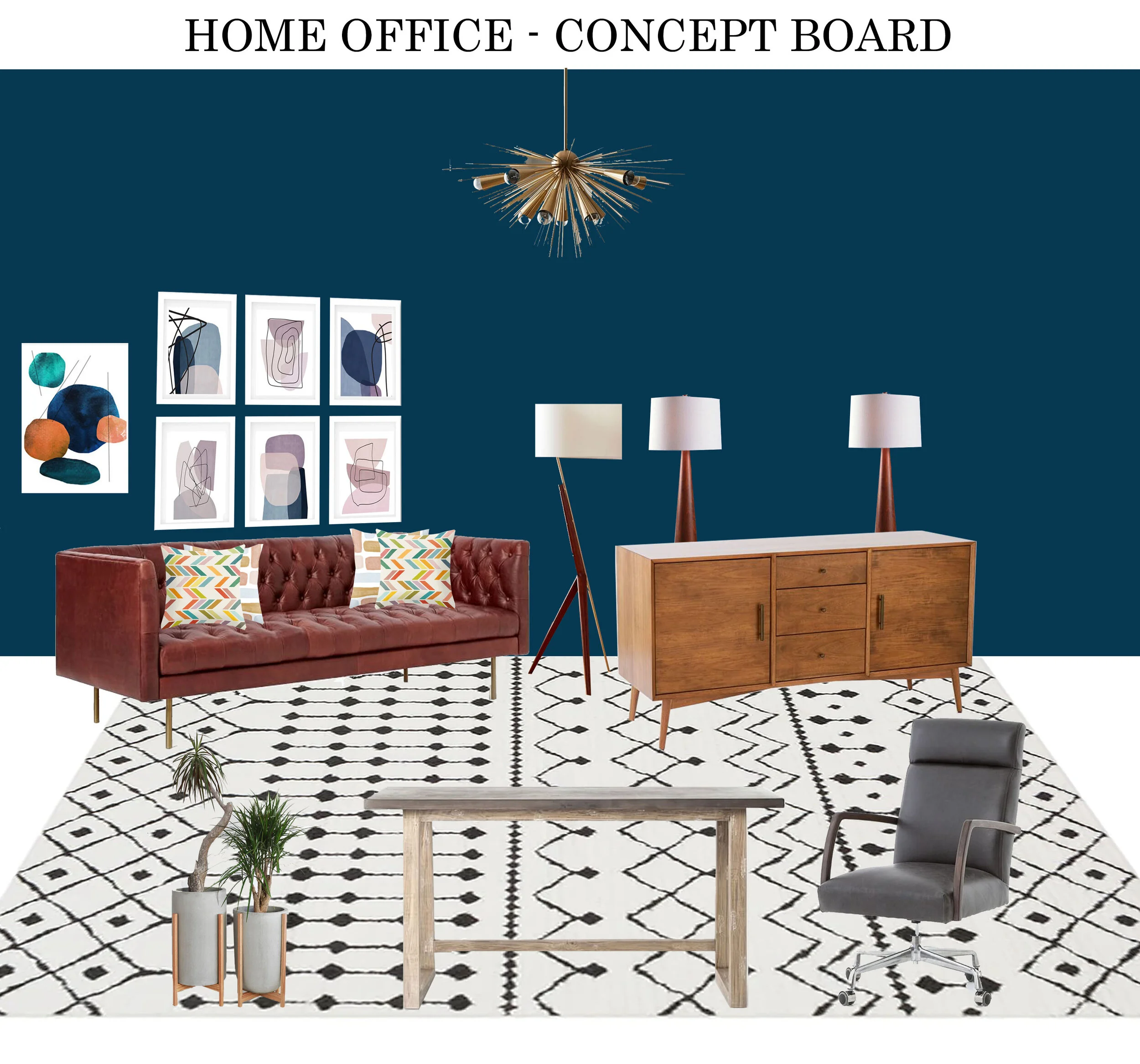 After you sent me the information for step on, I will create a floor plan of the home office with the measurements you provided. After your approval, I will begin the next phase of the project, the Concept board! Within 5 Business days I will message you using the chat green message link and will let you know your Concept board is ready for review! It will be posted below with your link (in case you forgot it) to the private Pinterest board containing all the pieces I used in the board and a few alternatives.