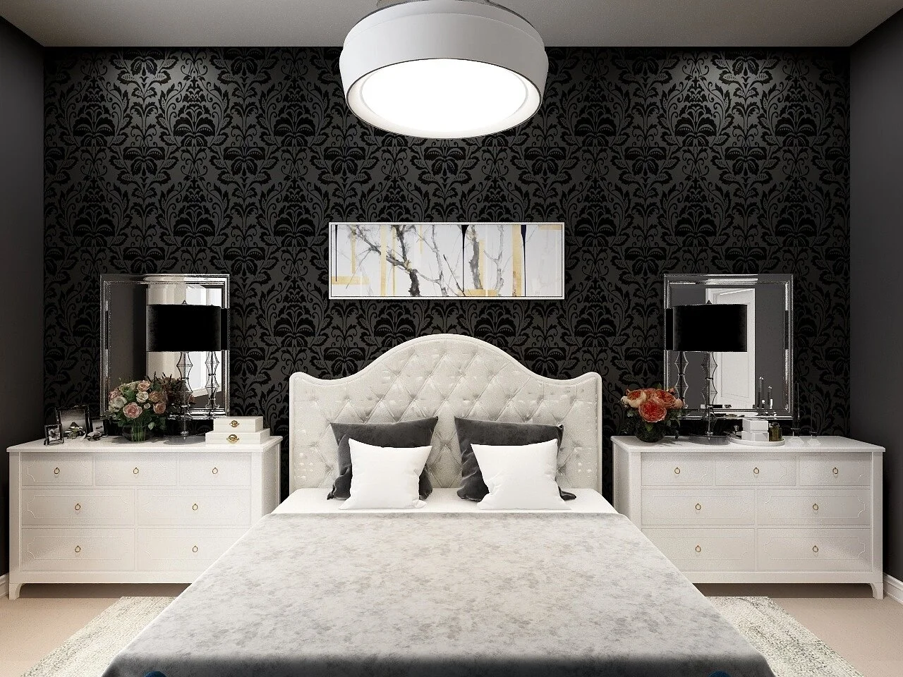 You can go high-impact with the black walls or wallpaper (if you like) a more textured look in the room. We can create a striking glam style by pairing the lighter neutrals with intense black table lamps and jewel tones.