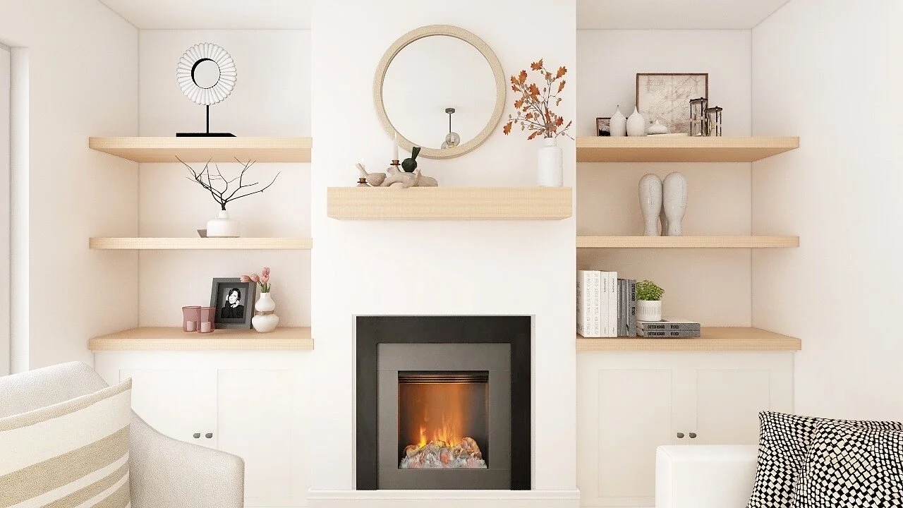 I have created built-ins to show you how it will look once they are built. The accessories are just for visualization.